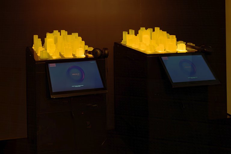 Conceived as a contemporary urban synthesis, the installation unfolds across three distinct phases — chaos, harmony and quiet. At first, the layered sounds of city life intensify, creating tension and disorientation. Gradually, noise dissolves, rhythm softens and balance emerges. The experience culminates in a condition of calm that is not defined by absence, but by precision.